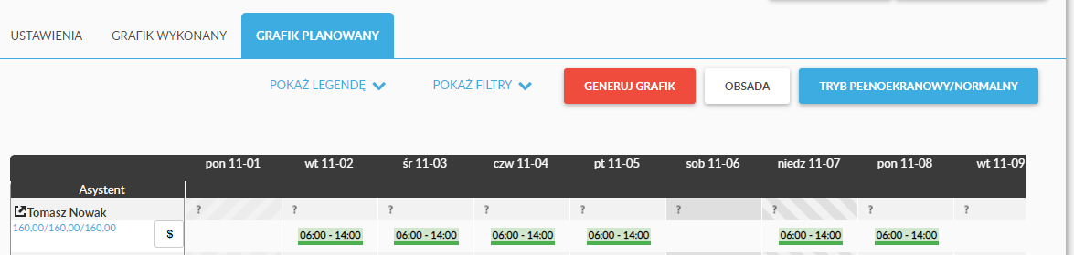 Zaakceptowana kompensata automatycznie naniesie się na grafik pracy: